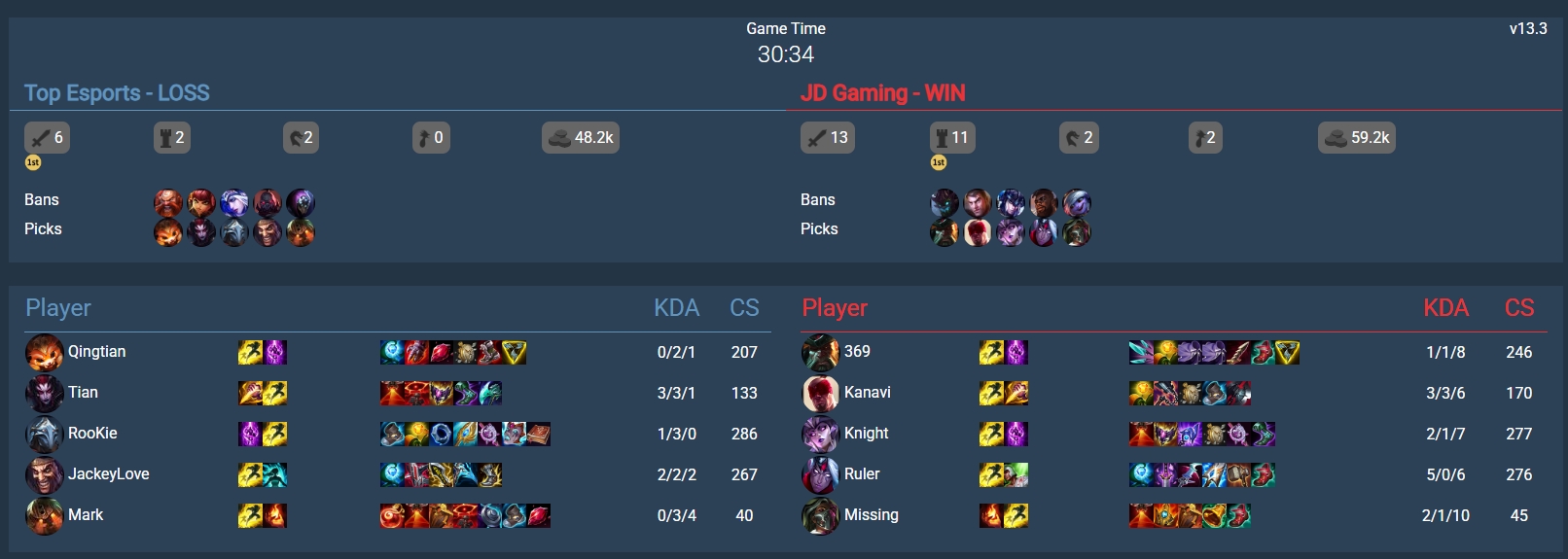 值得一提的是JKL选用德莱文面对JDG的三代AD Hope、Ruler、Peyz,均落败。