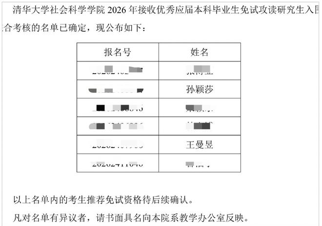 9月16日,清华大学社会科学学院发布《清华大学2026年社会科学学院接收优秀应届本科毕业生免试攻读研究生综合考核名单公示》,其中,孙颖莎、王曼昱在列。