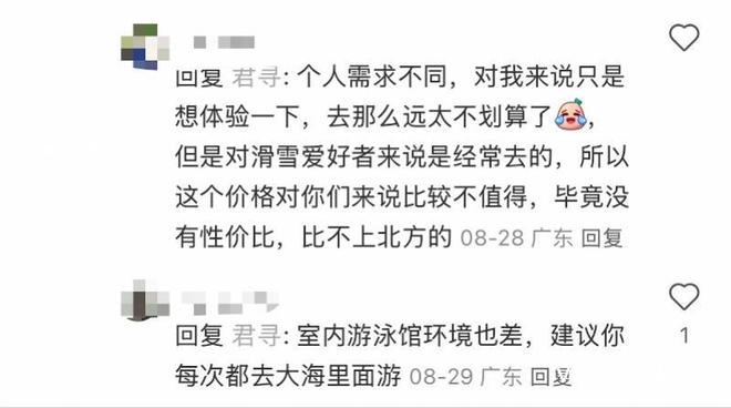 南北雪场价格对比更让消费者直呼“落差大”。“长白山全天滑雪含全套雪具才300多,这里3小时初级道就要348元”,有专业的滑雪爱好者晒图吐槽。不过也有少数消费者理解:“南方室内雪场运营成本高,省去了路费住宿,家门口的顶级设施偶尔体验可行”,但不少消费者仍呼吁推出学生票、工作日特惠等亲民产品,降低体验门槛。