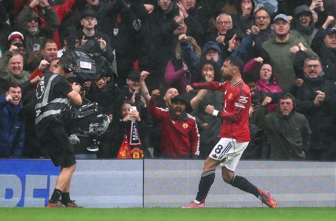 雷速体育9月21日讯 英超第5轮,曼联在主场迎战切尔西,布鲁诺·费尔南德斯为球队首开记录。