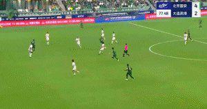 第76分钟,塞尔吉尼奥前场左路接到张玉宁的分球后,个人带球杀入禁区射门高出。第78分钟,法比奥接张玉宁的斜传,个人沿左侧带球到禁区内切后右脚低射,黄子豪扑了一下球依然入网,国安4比2领先,法比奥上演帽子戏法。