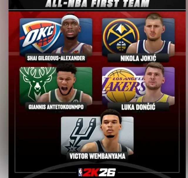 季前赛收官之后,NBA常规赛即将正式开打,而在开赛之前,各家媒体也在提前为新赛季造势。2K体育第一时间公布了对于2025-26赛季的最佳阵容预测名单。