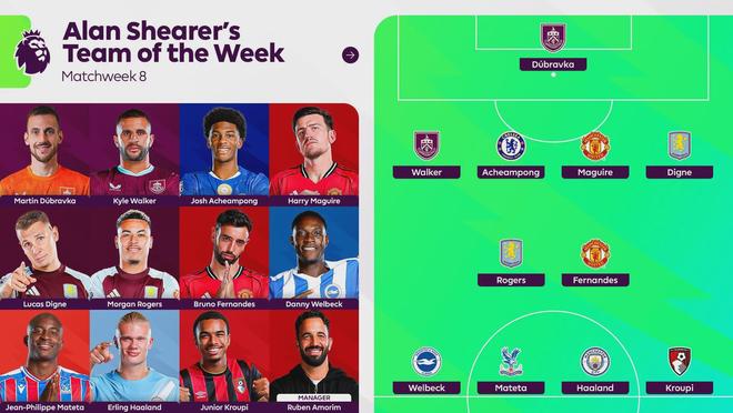 - 英超 | 阿兰希勒评英超第8轮最佳阵:哈兰德领衔,马奎尔入选