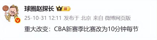 - NBA | 终于来了!CBA单节改为10分钟,望节奏变快,小将锻炼机会被压缩