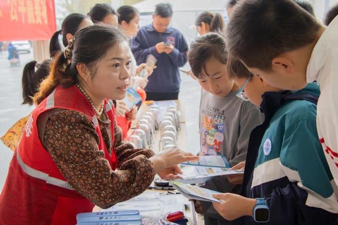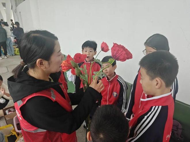 同学们手持彩色禁毒打卡牌