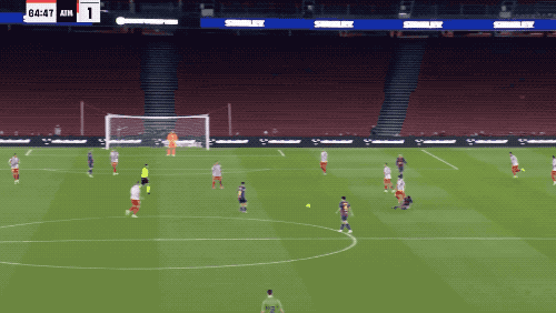 第65分钟,巴萨在前场错进错出,莱万送出助攻,奥尔莫的射门帮助巴萨再次取得领先,进球后的奥尔莫捂着肩膀,再次受伤。