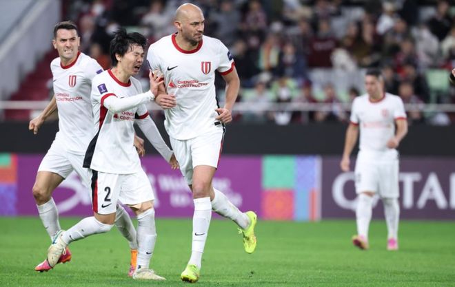 稍早时候一场比赛,中超球队成都蓉城对阵日本球队神户胜利船。