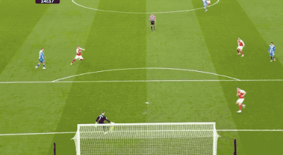 第14分钟,布莱顿的传球被抢断,萨卡送出助攻,厄德高打近角得手,枪手早早取得领先。